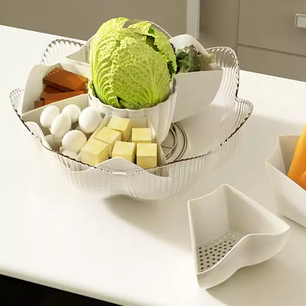 Khay đựng thực phẩm với thiết kế sáng tạo mới cùng với chân đế có thể xoay tiện lợi, mẫu mã tinh tế, sang trọng mà vô cùng đẹp mắt, nó sẽ là một món đồ hữu ích và thiết thực ở trong căn bếp của mỗi nhà